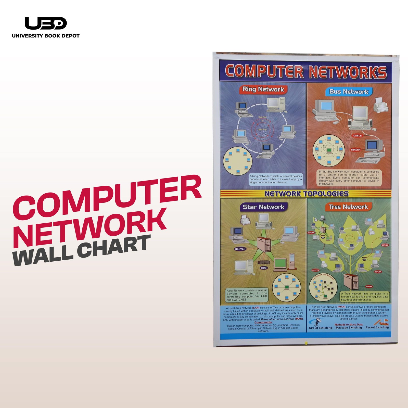 This “Computer Network” wall chart is a vital educational tool that explores various network topologies, including star, bus, tree, and ring configurations. Designed to enhance understanding of network structures, this 23×36-inch chart features clear diagrams and concise explanations for each topology. Printed on durable 200-gram laminated card, it is ideal for computer science classrooms and offers a long-lasting reference for students.