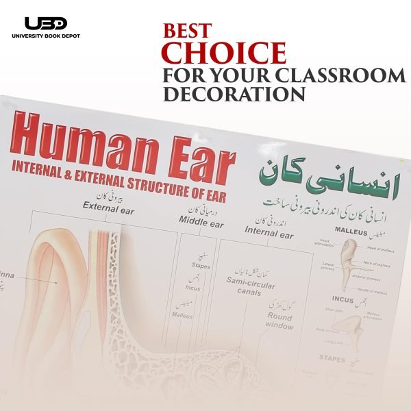 The Human Ear Wall Chart provides a detailed illustration of the internal and outer ear, perfect for educational purposes. With HD images, it clearly shows the structure and functions of the ear, making it an ideal tool for biology lessons and classroom learning.