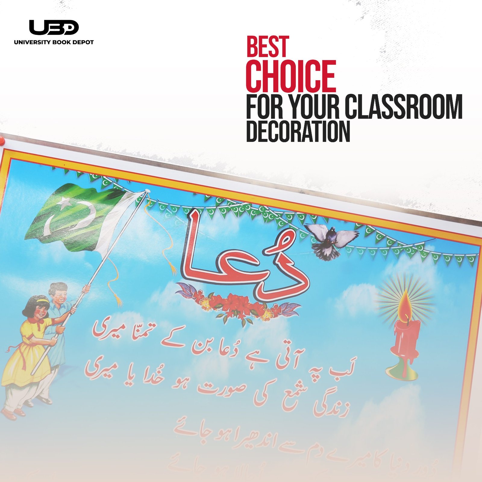 Enhance the ambiance of any classroom with the Lab pe ati hai Dua Wall Chart for School Decoration featuring the timeless Dua by ALLAMA IQBAL. Printed on a premium 200 Grams Laminated Card, this chart is durable and visually appealing. Perfect for school and office settings, it adds a touch of inspiration to the environment. Ideal for teachers and educators looking to create an uplifting and educational atmosphere.