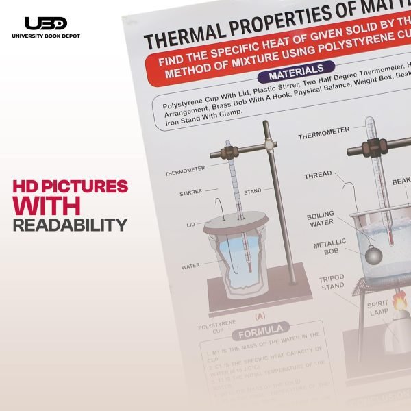 This “Thermal Properties of Matter” wall chart provides a comprehensive overview of how matter responds to temperature changes, including concepts like heat capacity, thermal expansion, and conductivity. Measuring 23×36 inches, it’s ideal for chemistry classrooms, offering clear explanations and visuals to support student learning. Printed on durable 200-gram laminated card, this chart ensures long-lasting quality, making it an excellent addition to any science lab or classroom.